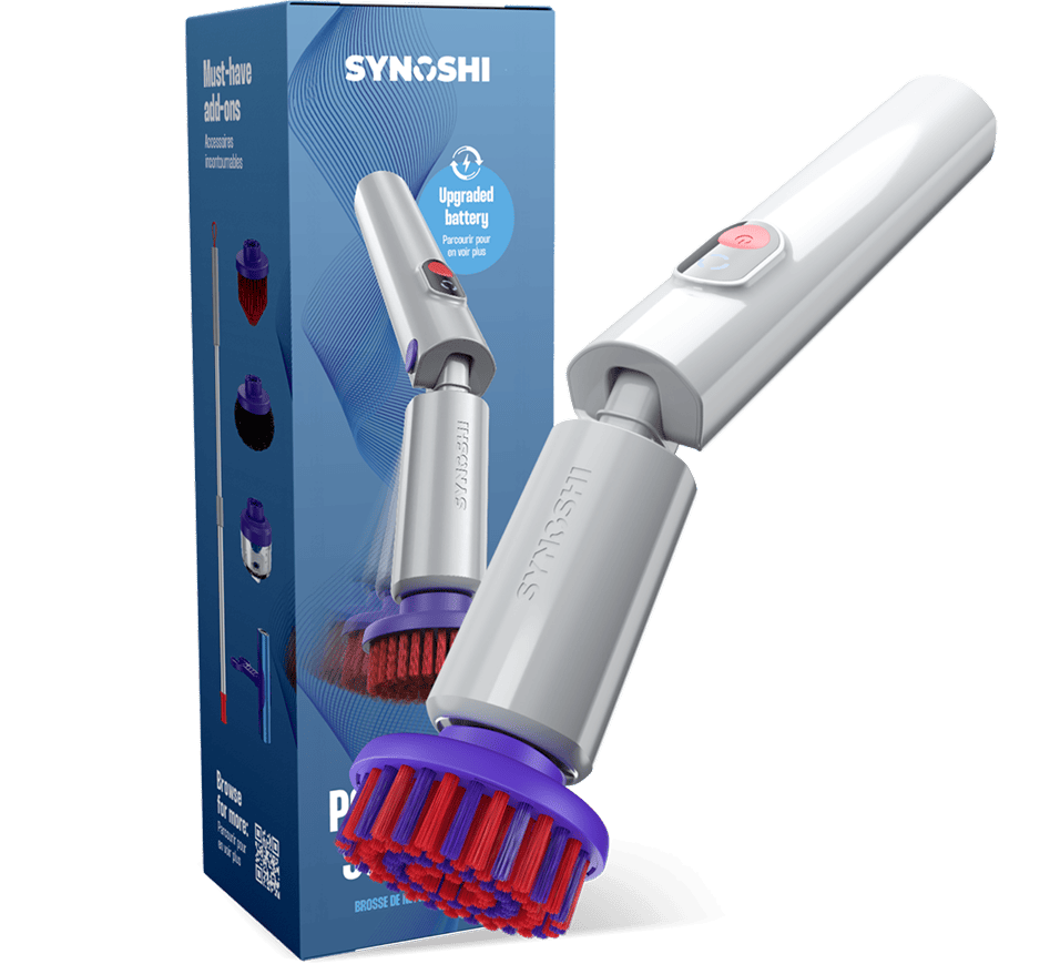 Built with advanced high-torque spinning technology and a smart, ergonomic design, Synoshi Pro removes stubborn grime, mold, and built-up dirt with minimal effort.