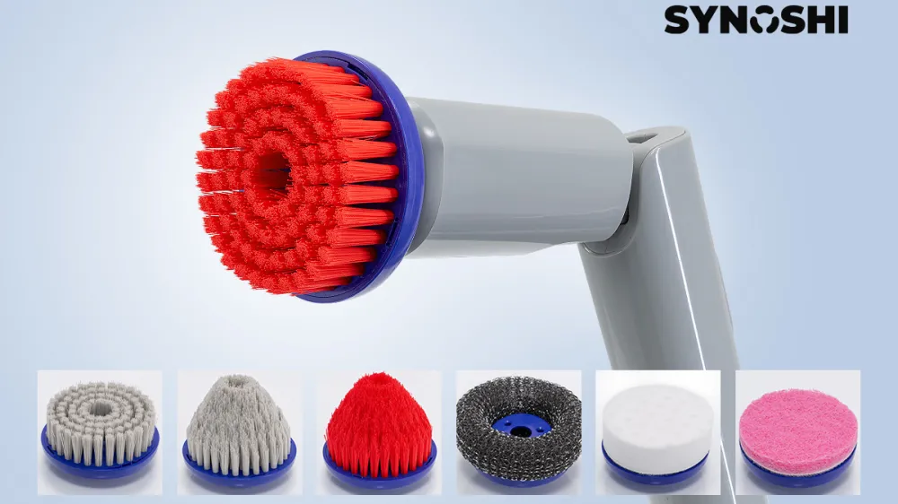 Once activated, Synoshi Pro’s powerful motor spins the attached cleaning head at high speed. This continuous rotational motion breaks down and loosens stubborn grime, soap scum, grease, and built-up dirt that manual scrubbing can’t effectively remove.