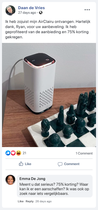 Na het testen van tientallen luchtreinigers viel AirClairu om één simpele reden op: hij doet daadwerkelijk wat hij belooft.