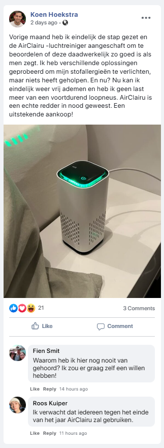 Toen zag ik AirClairu overal opduiken.